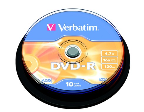 • DVD-R 4,7GB/120min 16x spindle 10/1 Verbatim
