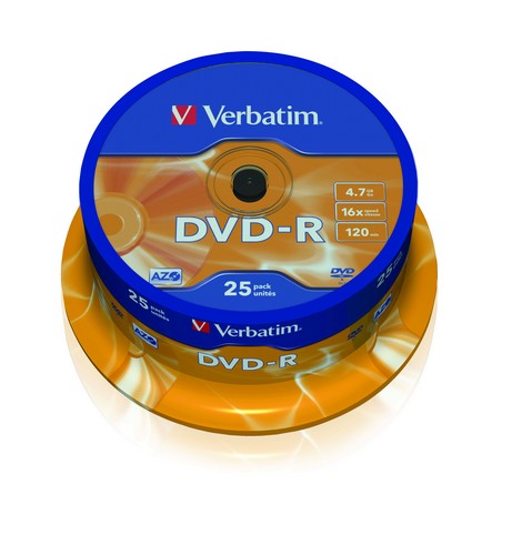 • DVD-R 4,7GB/120 min 16x Verbatim 25/1