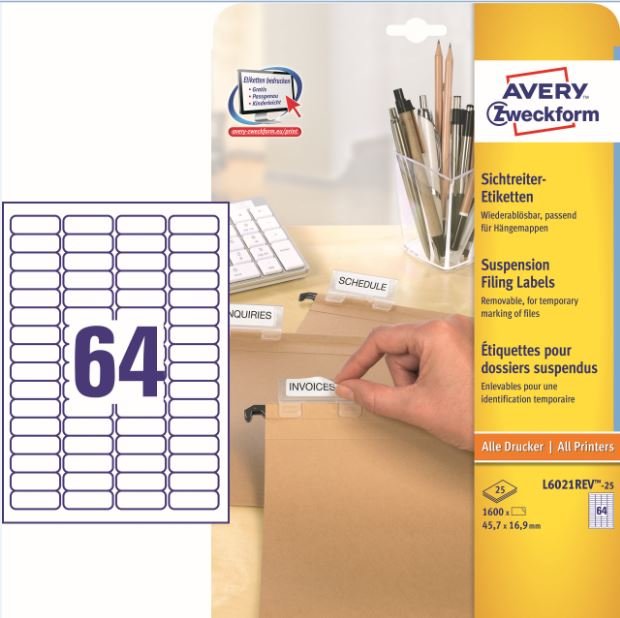Awery - Zweckform etikete L-6021, 45,7x16,9 25/1, 1600 etiketa